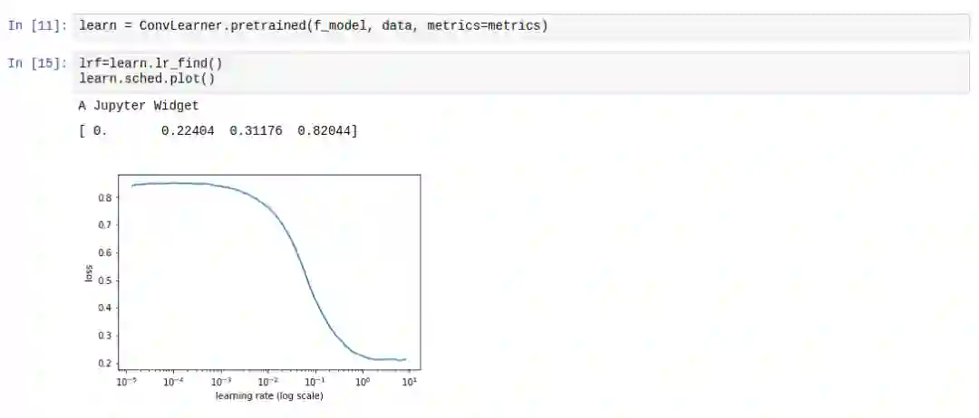 在fastai中,你只需在学习的对象上运行lr_find()函数,学习率退火算法就能发挥效用。同时,sched.plot()函数可以用来确定与最优学习速率相一致的点。