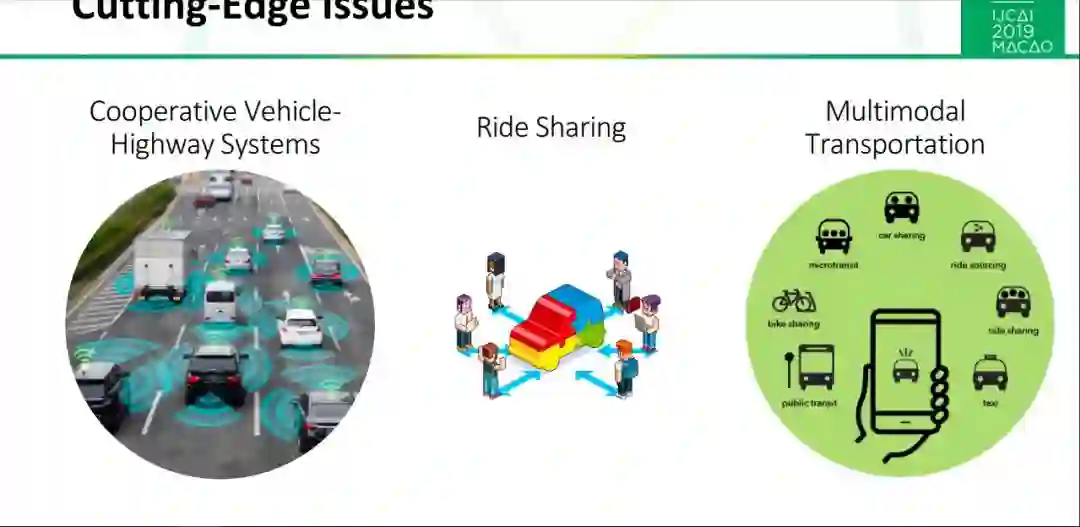 交通运输是一个非常广泛的研究领域。在本教程中,我们基于全球最大移动交通平台——滴滴出行的实际应用和需求,围绕移动交通平台的主题展开研究。我们将主题分成三类。首先是地图服务,包括地图匹配、交通预测、预计到达时间(ETA)和路线规划等,为后续决策过程提供准确的基础信息,这些问题大多在纯交通或地理信息系统领域中进行了研究,但都无法满足实时移动交通平台的精度或效率要求,因此有必要以现代的观点重新审视这些问题,来探索适应这些更加严格的要求;第二类是决策,构建核心的拼车平台,类似的问题在交通运输以外的研究领域也得到了广泛的研究,但随着移动交通系统的发展,已经被重新定义;最后一类是用户体验,如出行安全评估,这是移动交通平台的独特需求。
