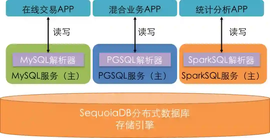 SequoiaDB通过其计算存储分离架构,在NewSQL结构化数据领域有效利用MySQL、SparkSQL与PGSQL解析执行器,在保持行业标准100%兼容的同时,完美实现了在线交易与离线分析的HTAP混合交易分析负载的支撑。同时SequoiaDB使用API满足企业对半结构化JSON数据的支持,以及通过兼容Posix文件系统以及S3接口实现了非结构化数据的存储与访问。