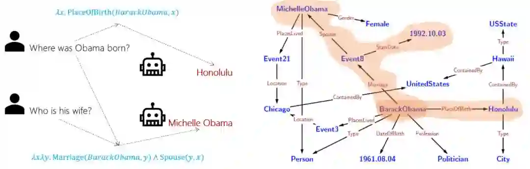 语义分析旨在将自然语言转换为机器能够理解的结构化语义表示(例如Lambda表达式、SQL语句和SPARQL语句等)。基于语义表示,下游NLP任务(例如智能问答和对话系统等)能够从对应的结构化知识图谱中进行相关信息的精准查询,并将其用于输出结果的生成。下图就是语义分析在多轮问答中的一个应用示例。