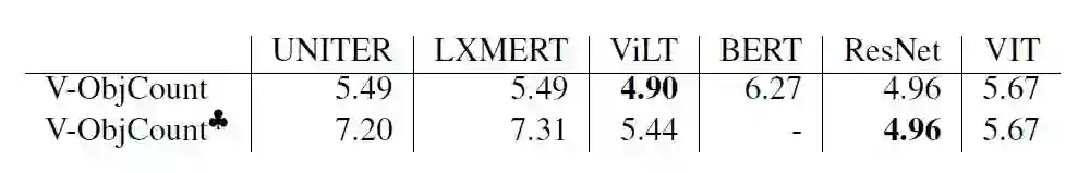 在视觉计数任务上(使用RMSE作为评价标准,越小越好),可以发现正确的语言线索可以显著的提高模型的性能。