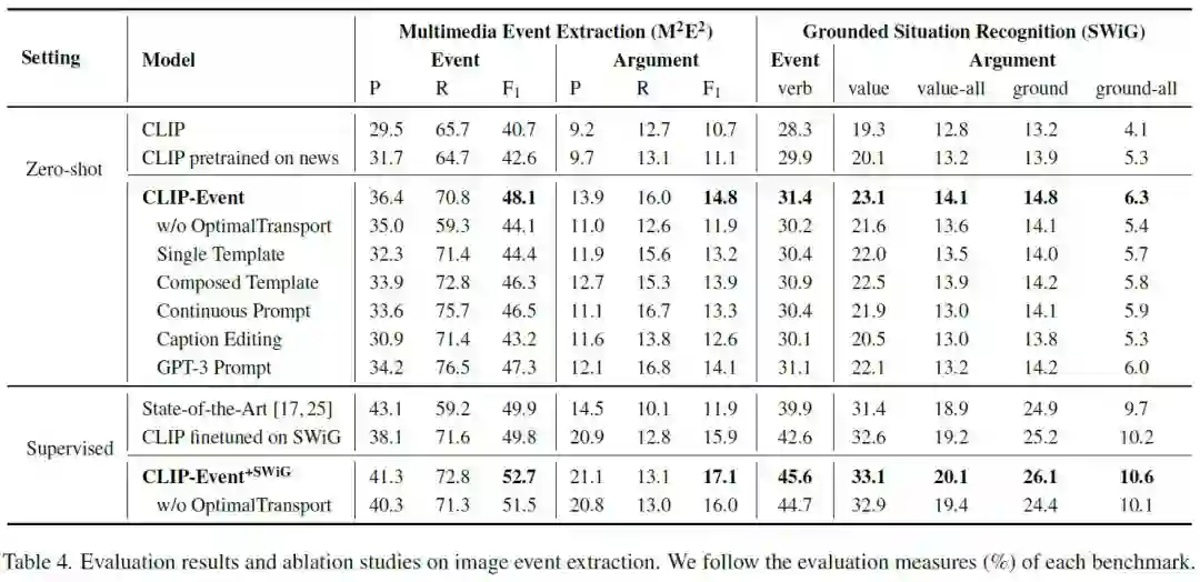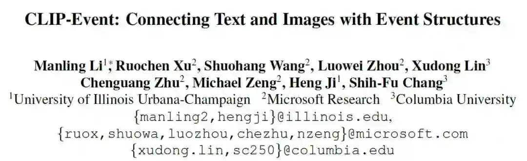 视觉语言预训练模型通过理解图片-文本之间的对齐,在支持多模态应用方面取得了巨大的成功。本文中,作者提出了一个对比学习的框架来增强视觉语言预训练模型对结构性事件信息的理解,并且收集了事件丰富的图文对用于模型的预训练。实验表明,在多模态时间提取方面,作者的CLIP-event预训练模型在Zero-shot和supervised的设定下能够在多模态事件抽取任务上达到SOTA。