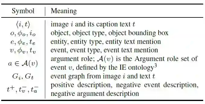 首先,使用Faster R-CNN提取图片中的Objects;对Caption使用SOTA的信息抽取系统提取事件并确定基本事件类型(如果存在多事件,图像更通常地描述了标题的主要事件;选择更接近依赖性解析树、有更多Arguments、更高事件频率以及在CLIP下动词和图片有更高相似度的事件作为基本事件)。然后框架根据提取到的事件类型设计两类Caption负样本(改变事件类别或只改变事件Arg顺序),并根据prompt函数生成结构事件的描述。通过优化图片事件图和正例事件图之间的最优传输距离以及正负样本与图片的相似度来达到多模态信息融合。以下介绍相关细节: