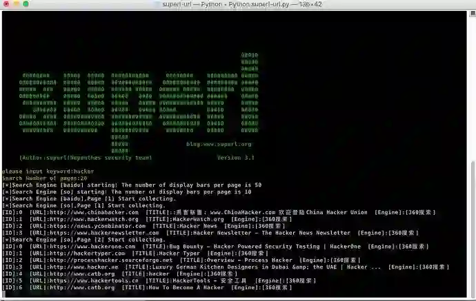 superl-url是一款开源的,并且功能强大的关键词URL采集工具,可以根据关键词,对搜索引擎内容检索结果的网址内容进行采集。