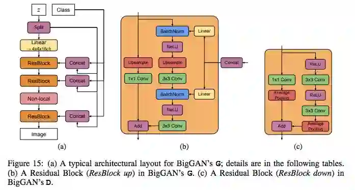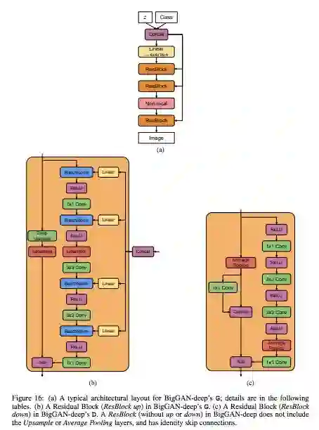 目前,这篇论文已经出了更新版,模型架构也有所改进,新版模型名为 BigGAN-deep,从名字中我们可以猜测出二者在深度方面似乎有所区别。