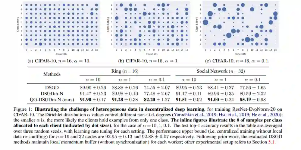 深度学习模型的分散训练是实现网络上数据隐私和设备上学习的关键要素。在现实的学习场景中,不同客户端局部数据集之间存在异构,这对优化提出了挑战,并可能严重影响泛化性能。在本文中,我们研究并识别了几种分散优化算法在不同程度的数据异构下的局限性。我们提出了一种新的基于动量的方法来缓解这种分散训练的困难。我们通过对各种CV/NLP数据集(CIFAR-10、ImageNet和AG News)和几种网络拓扑(Ring和Social network)的大量经验实验表明,与其他现有方法相比,我们的方法对客户数据的异构性更稳健,测试性能显著提高(1% - 20%)。我们的代码是公开的。