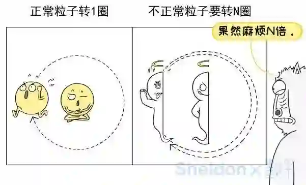 这就好比把一个正常的粒子的统计特性平均分成了N份,不正常的粒子转N圈,才相当于正常的粒子转一圈。