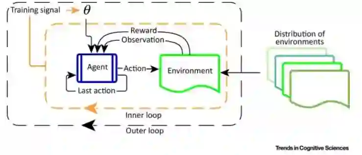 Wang 等研究者提出,Meta-RL 可以模拟生物大脑进行学习。他们认为以前额皮层(PFC)为中心的复位神经网络实现了学习的内循环,并且这种内循环算法由多巴胺驱动的突触可塑的外环慢慢形成。
