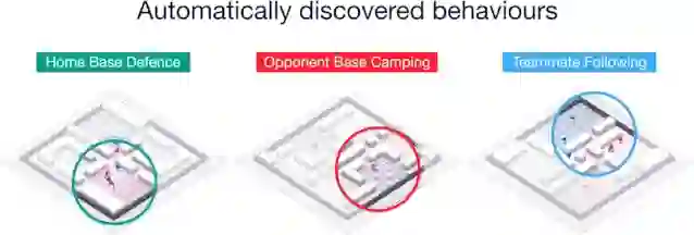 通过无监督学习,我们建立了代理人和人类的典型行为,发现智能体实际上学习了类似人类的行为,比如跟随队友并在对手的基地安营扎寨等。
