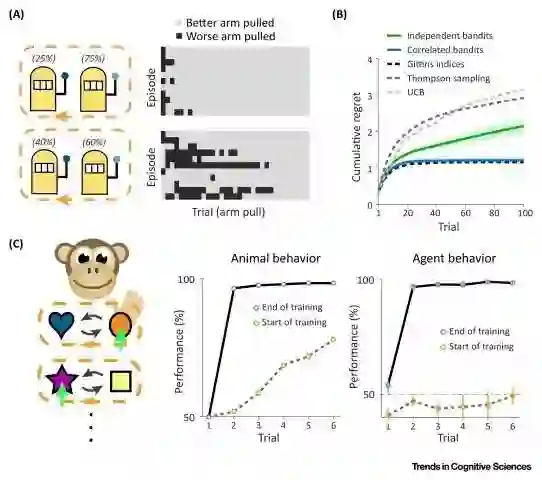 再说meta-RL,它对心理学和神经科学也有值得注意的潜在影响。有研究提出了从meta-RL的元素到神经结构和功能的直接映射。一系列计算机模拟表明, meta-RL可以解释行为和神经生理学中的各种实证研究结果。