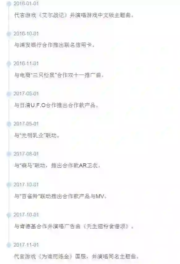 而对于商家客户来说,虚拟偶像永远精力充沛,绝不耍大牌,成本更低,也是不错的选择。例如2016年以来,虚拟偶像洛天依商业代言活动不完全统计如下,可见虚拟偶像有着极高的商业价值。