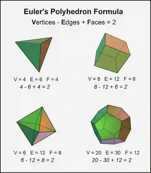 拓扑学是现代几何学的一个分支,它的起源可以追溯到瑞士数学家欧拉对多面体所做的基本观察。多面体是由平面、直线的边和尖锐的角(或者说顶点)组成的三维形状。1750年,欧拉发现,对于任意的凸多面体(所有的面都指向外部),顶点数减去边数加上面的数量总为2。