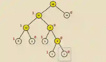 针对每层每次分支过程,我们可以将所有权重大的节点看做是1,权重小的节点看做是0,相反亦可。现在,我们比如需要知道钻石的code,就是1000,也就是灰色方框的位置,洗衣机的code就是111;这样的存储利用了0/1的存储方式,也同时考虑了组合位置的排列长度,节省了数据的存储空间。
