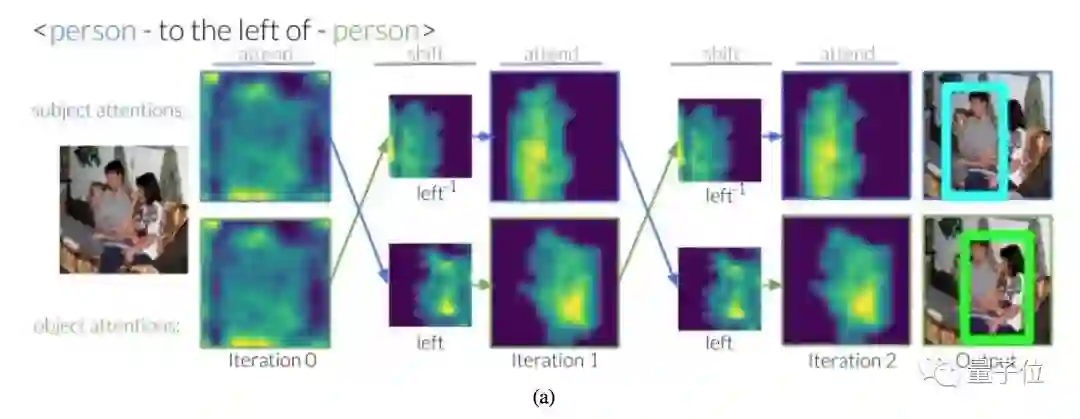 从上面的流程图我们也可以看出,根据主体和构建出来的关系描述,可以推断出来注意力转移到的区域,找到客体应该在的位置,并据此修改图像特征。也可以根据注意力转移,从客体推断出主体位置。这个过程,称为predicate shift。