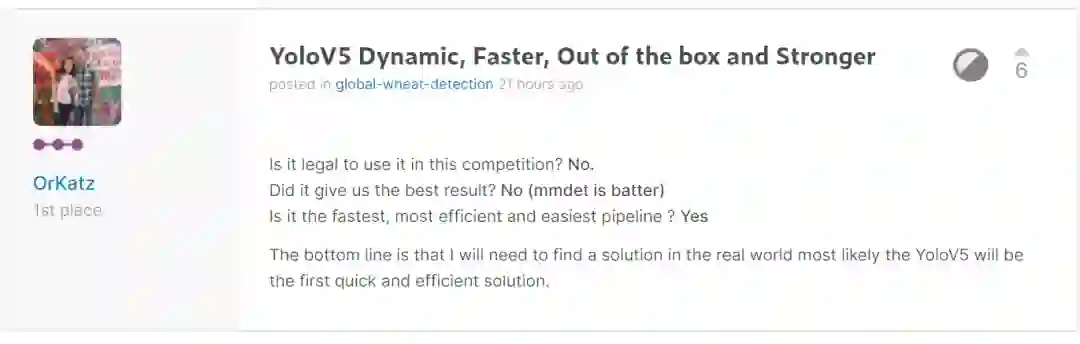 比赛结束后,讨论区本该是晒成绩或者解决方案的,但却出现了大量关于"YOLOv5"的讨论。