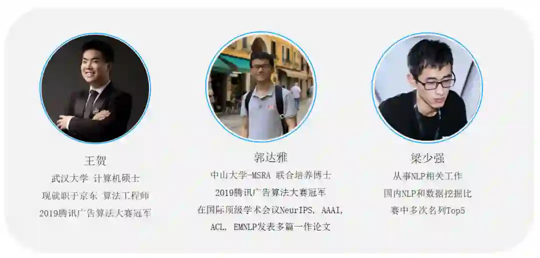 从初赛冠军、复赛冠军,然后到最佳答辩,一路披荆斩棘,再次感谢队友(中山大学微软亚洲研究院联合培养博士生郭达雅、多次荣获国内NLP和数据挖掘比赛top名次选手梁少强,赛圈id“大白”)。