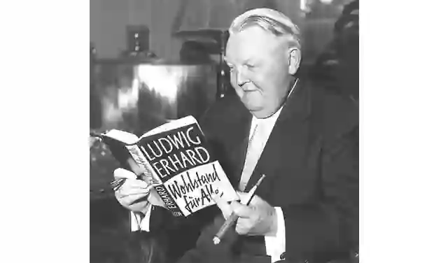 艾哈德是个经历丰富的人。从小患小儿麻痹症,右腿致残,第一次世界大战中负伤,后来在法兰克福大学获得博士学位。1925年到1928年,在父母的企业里当过经理。1928年到1942年,他在纽伦堡一个经济观察研究所工作,一开始重点研究自由市场经济的弊端,纳粹上台后又将重点放在纳粹德国的统制经济上,他认为统制经济的本质是强制把人和经济捆绑在战争上。1944年,他发表了《战争财政和债务巩固》一文,文中隐含的假设是德国战败后经济如何重建。不知何因,纳粹忽略了这篇文章,否则他很可能被处死。战后,英美占领区发现了他的预见性和才能,1945年10月他被任命为巴伐利亚州经济部长,1948年又成为整个西区经济的负责人。1949年,他当选为联邦德国的第一任经济部长。后来,在1963到1966年,他还担任过联邦总理。