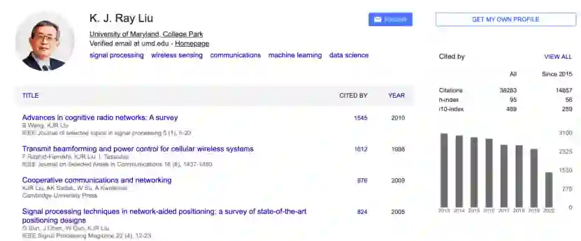 根据公开资料,刘国瑞是美国马里兰大学终身教授,美国科学促进会AAAS会士和IEEE会士,欧盟欧洲研究委员会、芬兰科学院科学与工程技术评审组、澳大利亚国家科学与工程研究评审组成员和香港科技大学战略发展顾问委员会成员、西北工业大学顾问教授。在信号处理与通信技术领域做出杰出贡献,出版高性能大规模信号处理、数字视频编码系统、超宽带通信、阵列信号处理与传感器网络、认知无线电组网与安全等专著10本,他的H-index达到95。