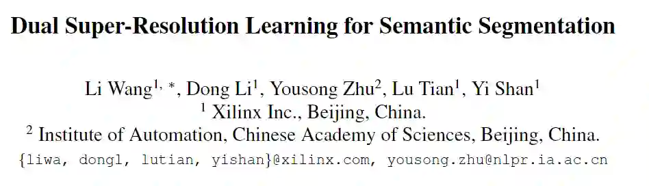 论文地址:http://openaccess.thecvf.com/content_CVPR_2020/papers/Wang_Dual_Super-Resolution_Learning_for_Semantic_Segmentation_CVPR_2020_paper.pdf