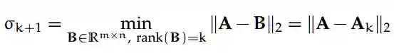 换句话说,上述定理指出,如果我们寻找一个矩阵 A 的 k 秩近似,使得「误差」矩阵的 2-范数或 Frobenius 范数最小化(即 A 和它的近似之间的差异最小化),随后我们需要保留 A 的最前 k 个奇异值和相应的左、右奇异向量。