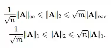 那么子矩阵的范数就和全部矩阵的范数相关:即||B||p <= ||A||p。矩阵 p-范数间的以下关系可以相对简单地证明。若给定一个 m×n 阶矩阵,