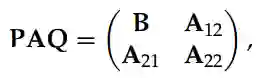 此外,矩阵 p-范数对于矩阵的初等变换是不变的,即||PAQ||p = ||A||p,其中 P 和 Q 为对应维度的初等变换矩阵。同样,如果我们考虑矩阵分割: