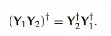 关于两个矩阵乘积的伪逆,有如下特别重要的属性:对于 m×p 阶矩阵 Y1 和 p×n 阶矩阵 Y2,且满足 Rank(Y1)=Rank(Y2),即秩相等,[9, Theorem 2.2.3] 表明: