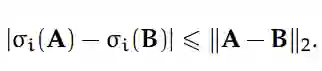 涉及矩阵 A 和 B 的奇异值的以下不等式是非常重要的。首先,如果 A 和 B 都在 R^m×n 上,对于所有 i = 1, ... , min{m, n},