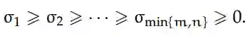 我们经常使用 u_i(或 v_j),i=1,..., m(或 j=1,..., n)来表示矩阵 U(或 V)的列。同样,我们将使用σ_i,i = 1,..., min{m, n} 来表示奇异值:
