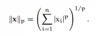 若给定 n 维向量 x 和一个整数 p > 1,我们可以定义向量 p-范数为: