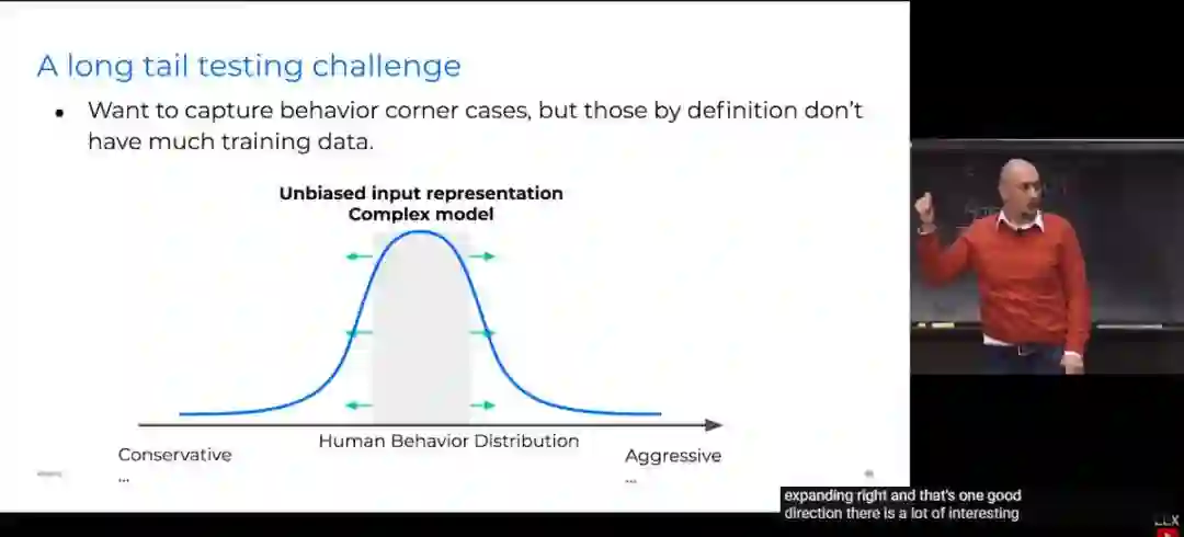 上图是人类行为分布,可以看到这是个正态分布,所以这就是导致了「长尾巴情况」的根本原因。即使图像两端的情况很少发生,我们的测试也要涵盖进去所有的人类行为情况。