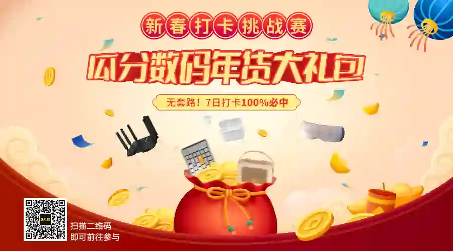 上 ZEALER 报名「新春打卡挑战赛」,打卡 5 天瓜分千元数码年货大礼包,打卡 7 天必中 ZEALER 专属定制礼物!祝大家虎年行大运!扫上方二维码或戳左下角「阅读原文」即可领走属于你的虎年礼物啦!