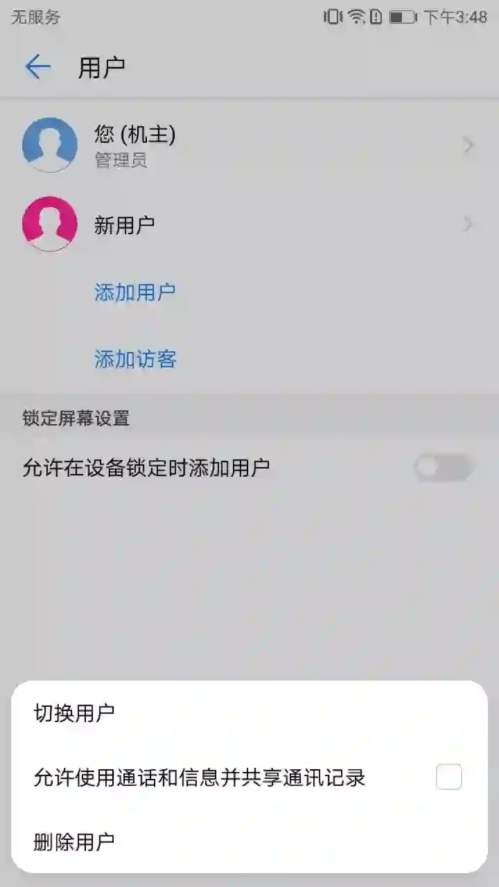EMUI 8.0 上也有一个实现效果类似的功能:多用户。可以在手机的机主用户之外设置多个子用户和访客用户。其中子用户会得到一个全新的手机空间,他的使用权限基本和机主一致,但不能进行重置等敏感操作,短信电话需要机主授权;访客则受到了比较严格的限制,只能进行特定的操作。