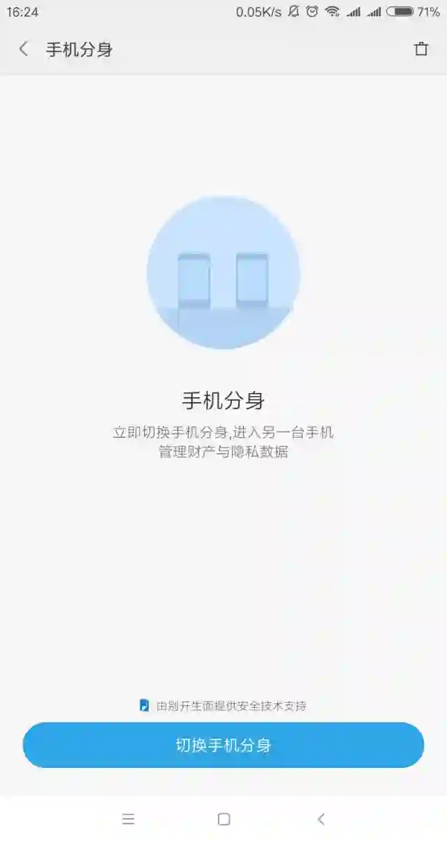 MIUI 8 发布时的一项重磅功能就是手机分身,可以在手机上添加一个新的空间,类似于电脑上的双系统。