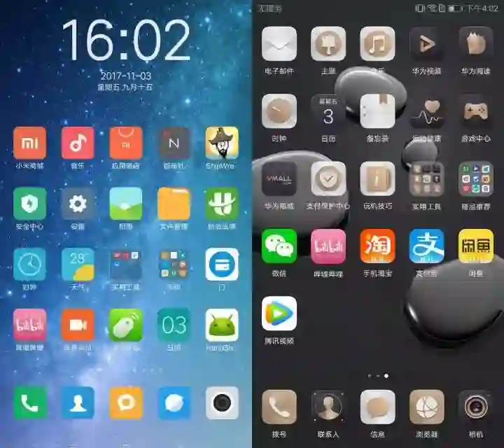 (左边为 MIUI 9,右边为 EMUI 8.0)