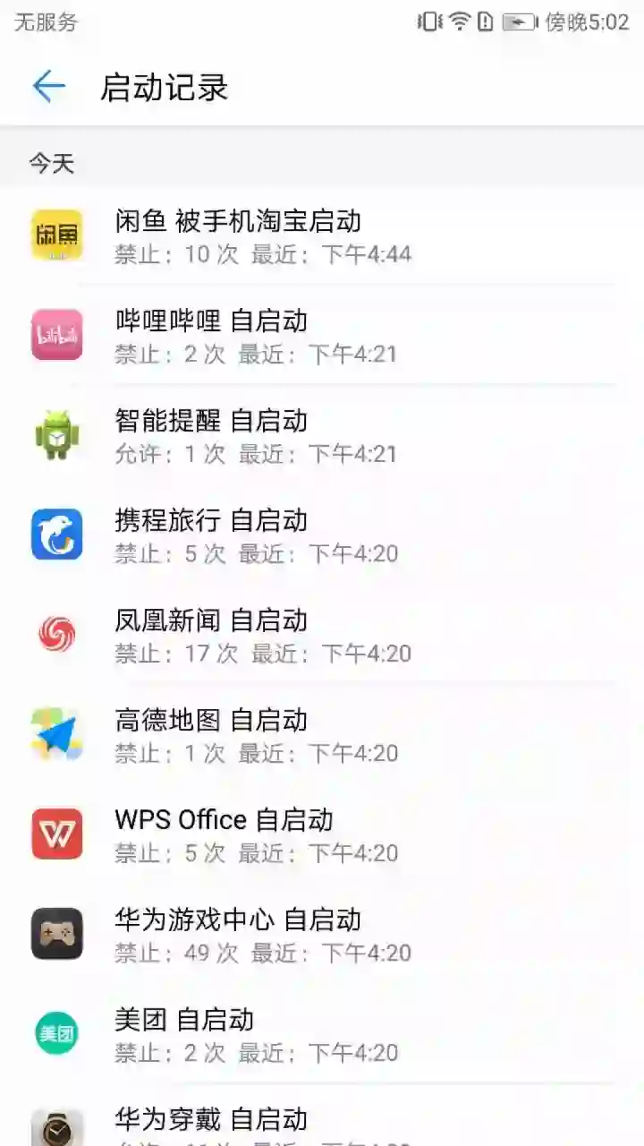 在 EMUI 8.0 的几天使用中,基本没有出现同系应用相互唤醒和自启动的情况,打开手机管家后才发现它们都被系统直接禁止了。
