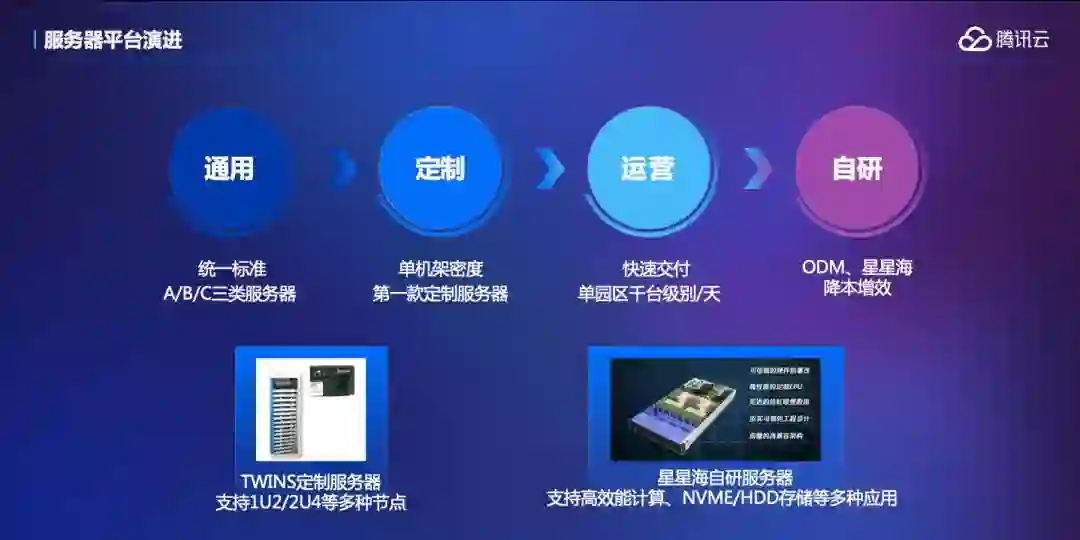 计算方面,目前腾讯通过虚拟网络 VPC 和软件定义存储 SDS,实现了内外网 IP 随意漂移和云盘的灵活挂载,加上虚拟机的热迁移技术,做到虚拟机在物理母机间的无感迁移,有效满足物理资源升级容错的需求。腾讯云主机管控平台 VStation 做到了每分钟交付千台虚拟机的能力,使得一个中等规模公司的计算需求可以快速得到满足。