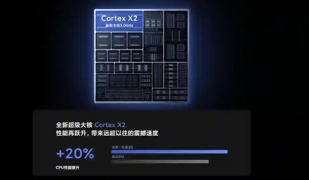 小米 12 系列搭载全新一代骁龙 8 SoC,也就是骁龙 8 Gen 1,基于新一代 Arm V9 架构。新一代骁龙 8 SoC 集成 8 核心 CPU,包括 1 颗 3.0GHz 的 X2 超大核心,3 颗 2.5GHz 的 A710 大核心,4 颗 1.8GHz 的 A510 能效核心。
