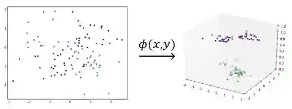 至此,似乎问题就转化为了如何寻找合适的映射、使得数据集在被它映射到高维空间后变得线性可分。