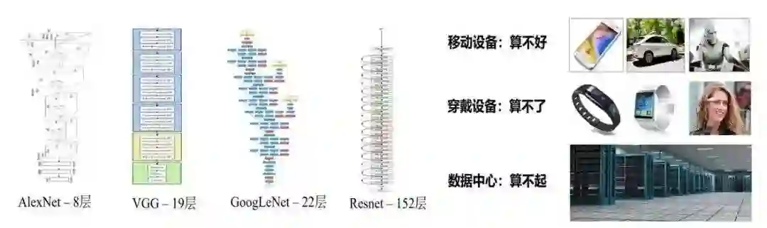 逐渐呈现了一种在移动设备平台上“算不好”,穿戴设备上“算不了”,数据中心“算不起”的无奈场面,如下图所示,因此如何将物体检测算法加速到满足工业应用要求,一直是关键性问题。