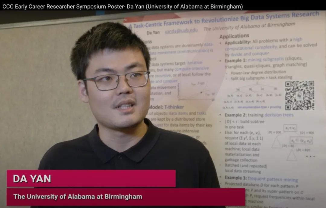 如果现在还没说服你继续读下去,而你恰好是搞大数据系统和算法研究的学者(业界见文本最后哈,不要走开!),那让我们看看 T-thinker 的研究可以在顶级计算机会议和期刊上有多高产!值得注意的是,T-thinker 是一个非常新的 topic:初步的概念发表在笔者等在 PPoPP’19 上的海报(poster)论文《T-thinker: A Task-Centric Distributed Framework For Compute-Intensive Divide-and-Conquer Algorithms》上,并且被计算研究协会(CRA)的计算社区联盟(CCC)评为伟大的新创意之一(https://cra.org/ccc/great-innovative-ideas/t-thinker-a-task-centric-framework-to-revolutionize-big-data-systems-research/,见图 2)。可以看 YouTube 的小伙伴们的可以戳这里看 T-thinker 相关的介绍性短视频: https://www.youtube.com/watch?v=3ub2ACLlg6M (见图 3)。