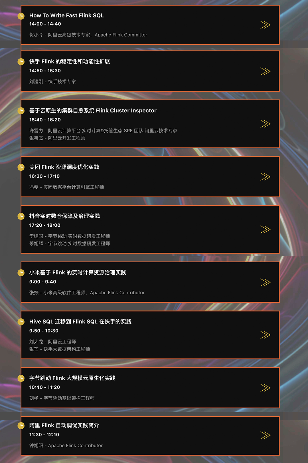 平台建设专场由来自爱奇艺、知乎、Dinky 社区、货拉拉、美团、联通、小米、StreamPark、阿里巴巴、蚂蚁集团的技术专家分享基于 Apache Flink 的实时计算平台演进与实践。