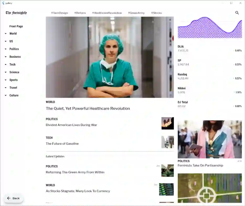 Flutter Gallery 中的许多案例代表了不同理念的应用风格,我们推荐您在使用 Flutter 设计自己的 Windows 应用时进行参考。如果感兴趣,您可以在 GitHub 上找到源代码。