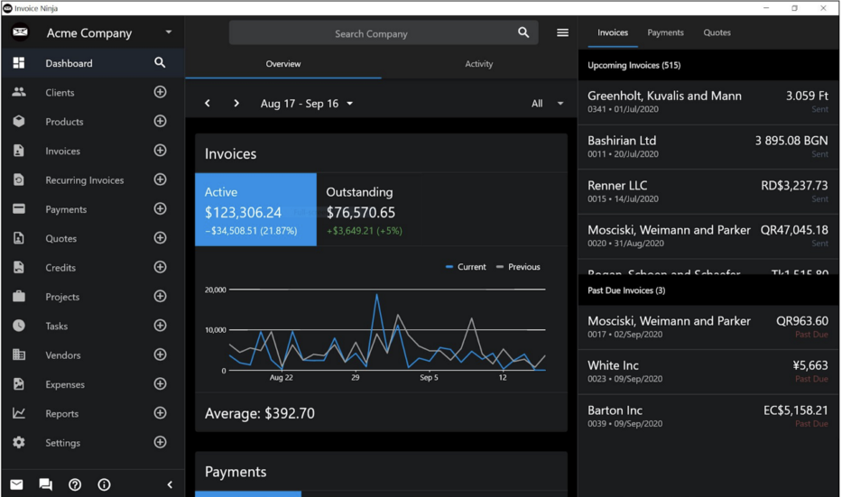 除了 Windows (以及广义上的 Flutter 桌面支持) package 和插件之外,Flutter 开发者也一直在构建用于 Windows 的优秀应用,比如 Invoice Ninja 的这一实验性作品:
