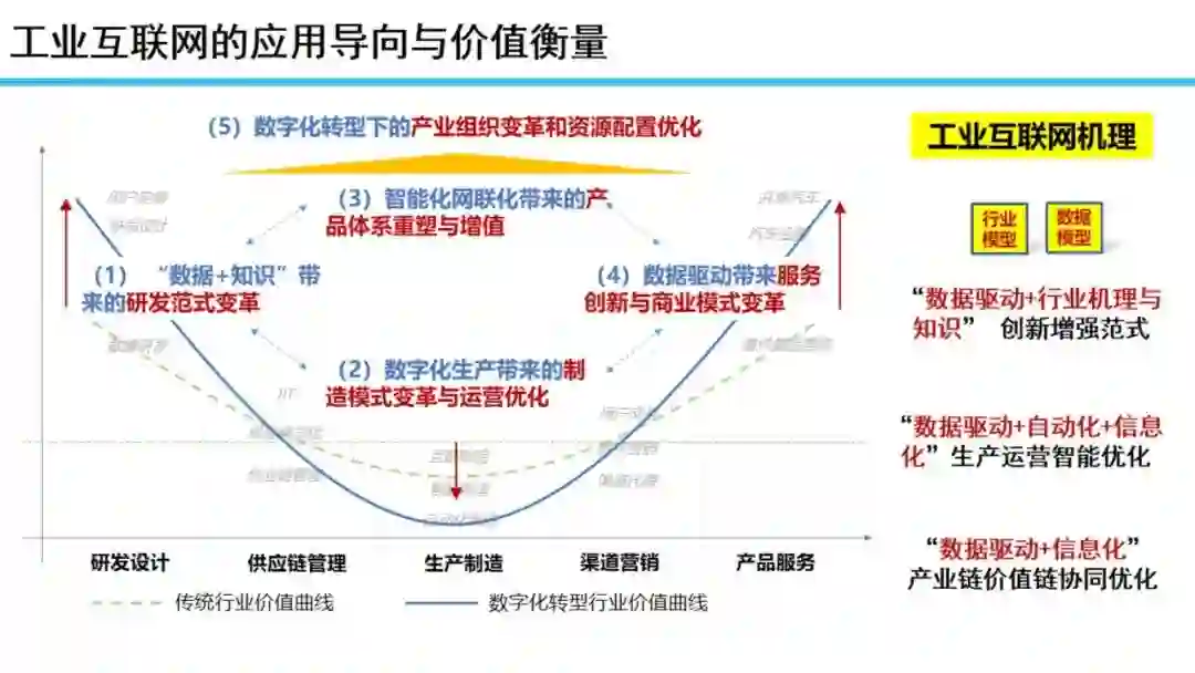 但现在看信息化与数字化还是有一点很不同,我们过去强调的信息化,从工业企业的层面有时会提自动化和信息化,其核心都是流程驱动的,是流程自动化,无论是生产流程还是企业的管理流程,追求的是生产效率的提升,实现精益生产精益管理;而现在数字化的一个重要特质是数据驱动,强调敏捷性、实时感知和全局智能化决策能力,实现数据驱动的商业模式变革,带动全要素生产率的提升。