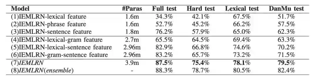 从实验结果上看,该模型在完整的测试集上,以及更加严格的测试集上都能取得不错的效果,这也说明了模型的有效性,接下来是模型结构的有效性测试。