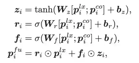 在本文中,作者仿照 GRU 的结构,对这两部分的表示进行了一个融合,从而更好的利用这部分的信息: