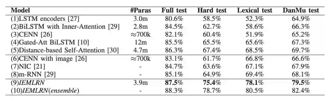 本文通过将图像信息引入到自然语言推理中,利用额外补充的信息对句子语义进行增强,从而更加准确地理解句子语义。思路非常新颖,而且这种多模态的建模方法个人感觉也是未来一个比较重要的研究方向。当然本文中也有一些地方还可以改进,例如图像的利用、图像的有效性分析等都值得思考。还是一篇很不错的文章。