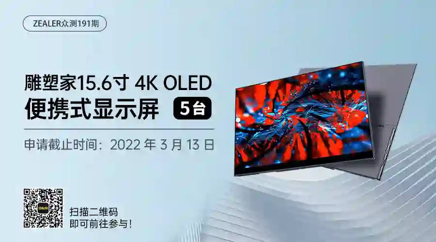 你和设计师的区别,可能就差一台「专业」显示器!雕塑家 4K OLED 便携触控显示器上线 ZEALER 众测!100000:1 的对比度,带来明暗有度、色彩鲜明的画面。AdobeRGB 超广色域与 Delta E<2 的色准表现,真实还原画面的每一处细节...扫上方二维码或戳左下角「阅读原文」即可前往参与。