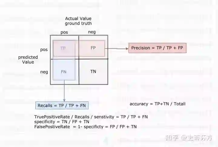 TN(TrueNegative):理论上来讲就是检测出不是这个类别的数量, 但是并不适用在目标检测领域, 因为通常一张图后会有非常多的bbox是没有检测到groundtruth的, 所以这无法计算, 并不影响, 因为也用不上